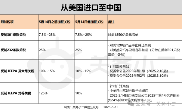 另:“初始90天内”是指从双方开始实施谈判结果的2025年5月14日起算,即2025年8月11日之前。